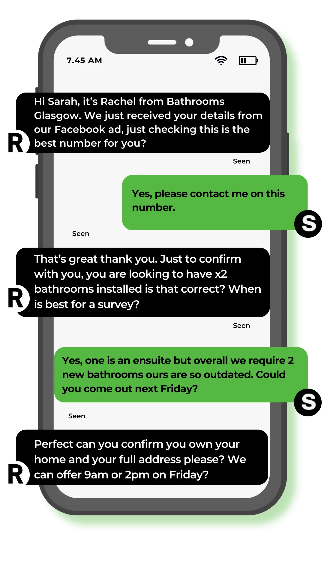 Lanarkshire Tiling and Bathrooms signed with us because they were feeling left behind with no digital marketing. They had amazing reviews, stunning craftsmanship and 15+ years experience. However, they had availability and not a lot of businesses prefer availability over revenue! So we got those spaces in the diary filled and fully booked them for the next 6 months!